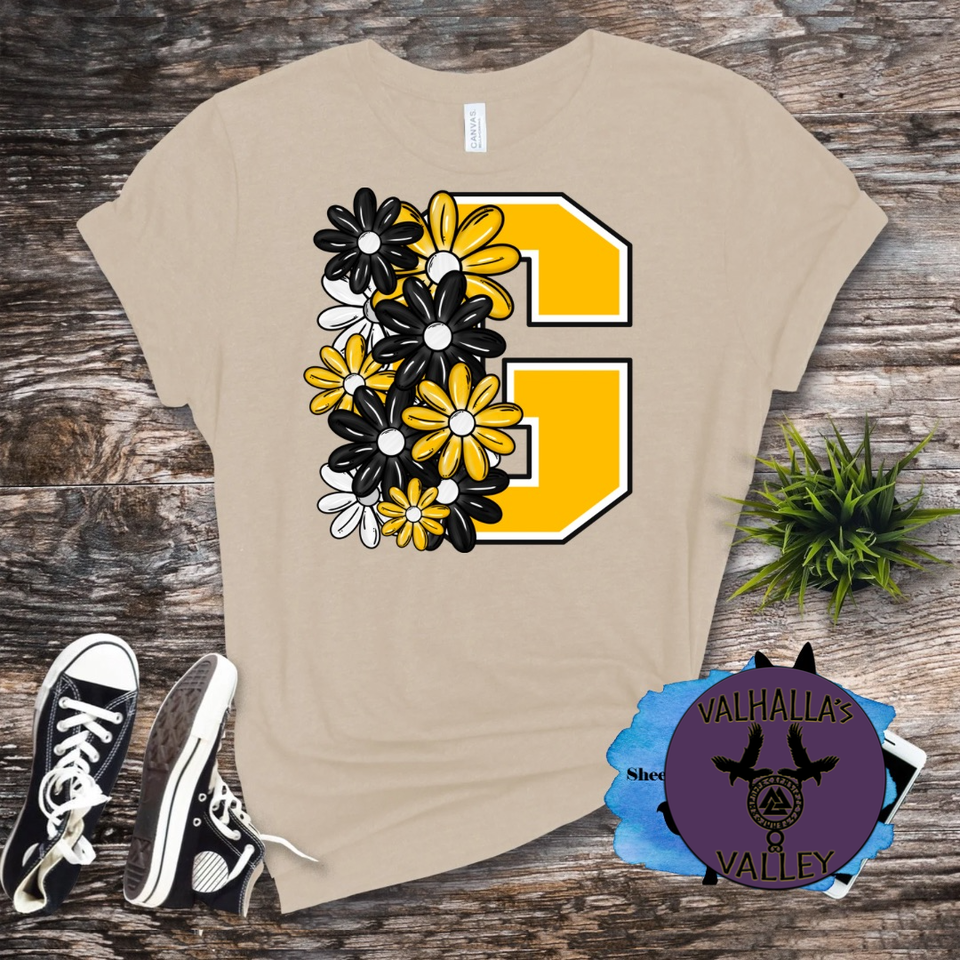 Big G Floral Yellowjackets black and gold tshirt